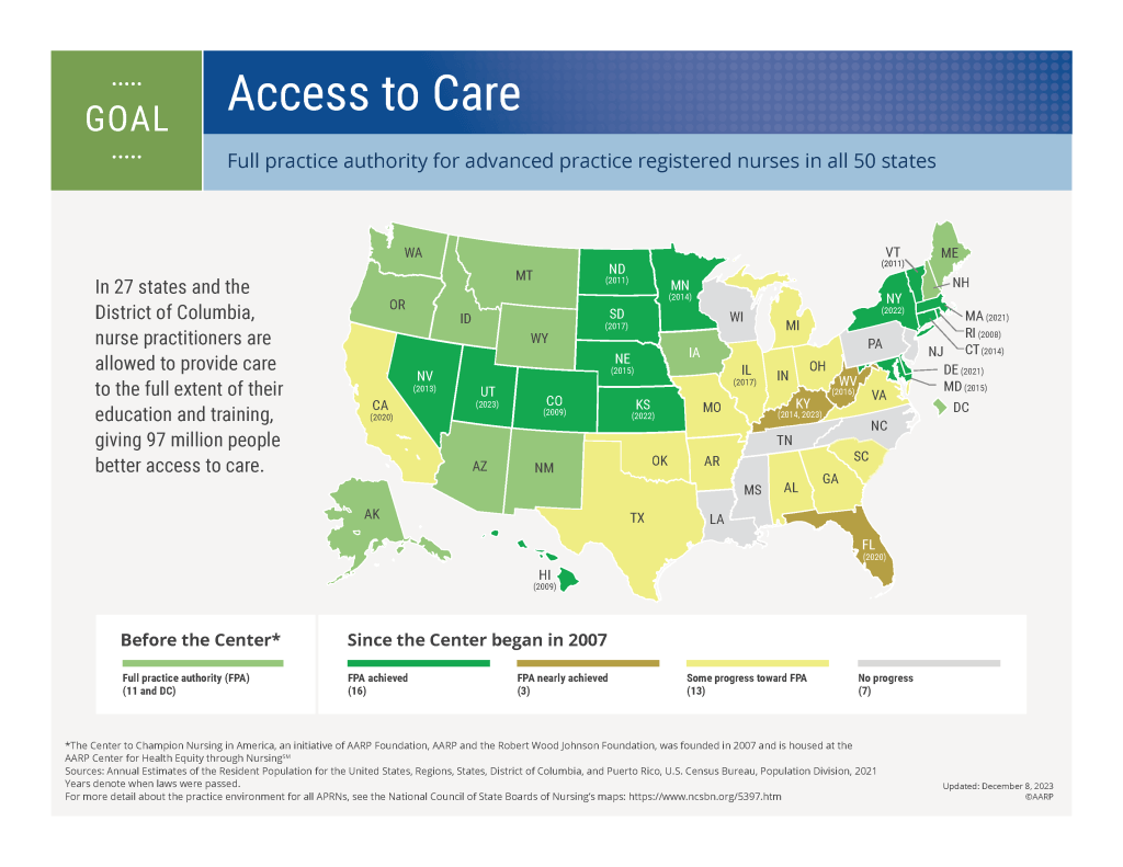 Working together and through the Future of Nursing: Campaign for Action, an initiative of AARP Foundation, AARP, and the Robert Wood Johnson Foundation (RWJF), we have made consequential progress last year in our shared goal of improving health equity through nursing.