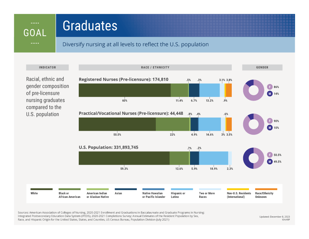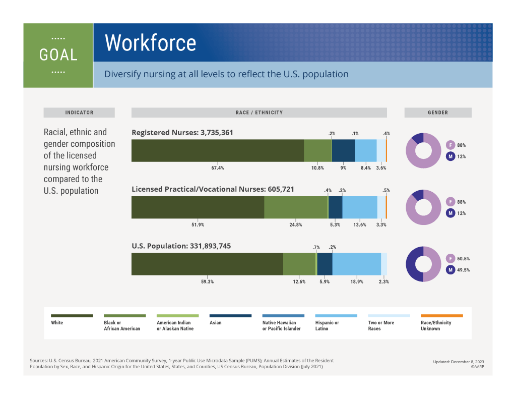 Shortly after the Campaign for Action launched, we built a dashboard to evaluate efforts to implement recommendations from the then-named Institute of Medicine 2010 report, The Future of Nursing: Leading Change, Advancing Health. The dashboard remains our touchstone. We are beginning 2024 with a refreshed dashboard, focused on improving consumer access to care and diversifying nursing at all levels.