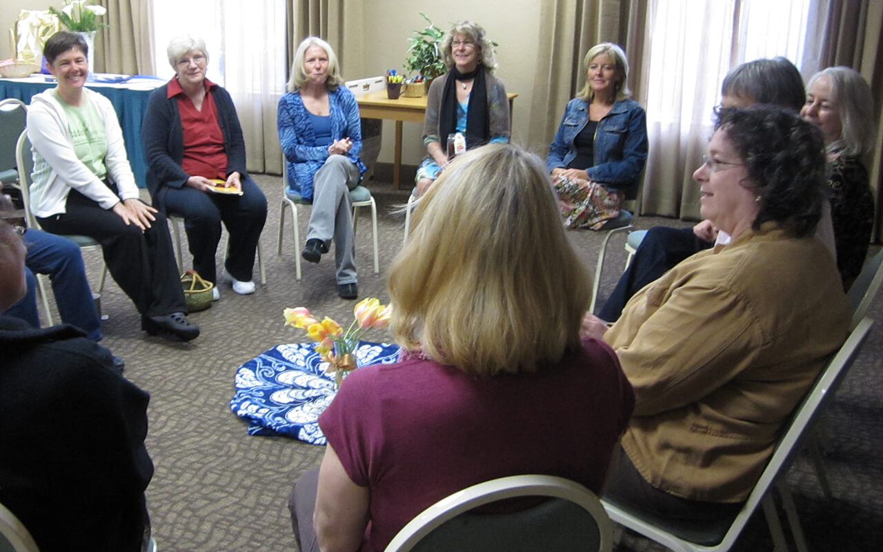 Renee’ Menkens, MS, RN (in the tan jacket, far right) participates at a retreat for the Registered Nurse to Bachelor of Science faculty at Oregon Health & Science University.