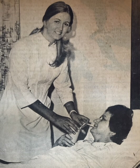 Lisa Eichelberger helps a patient in 1975, when she was a junior in nursing school at the University of Alabama Birmingham.
