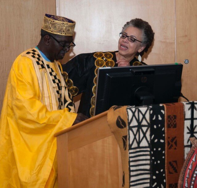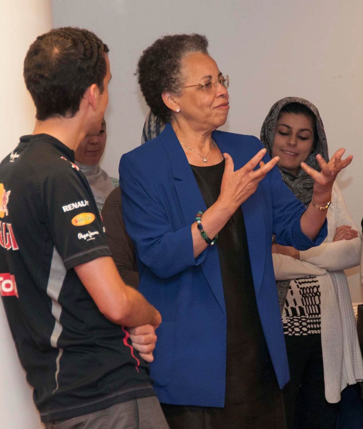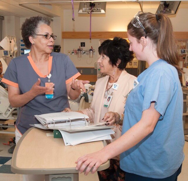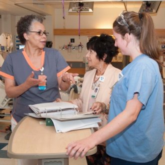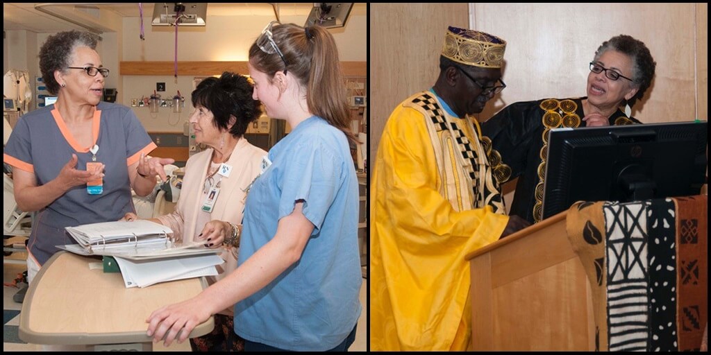 Washington participates in cultural rounds on a patient care unit to discuss culturally competent care.