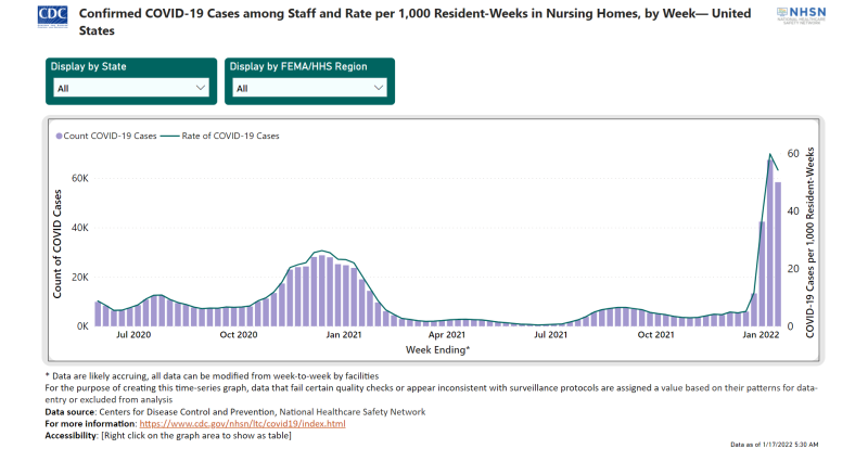 The last few weeks have seen record surges in COVID-19 infections in most of the country, in large part due to the arrival of the highly transmissible Omicron variant. Nursing homes are also seeing a rapid surge in cases among both staff and residents, according to weekly data collected by the Centers for Disease Control and Prevention (CDC). There are now more COVID-19 cases in nursing homes than ever before, and deaths are rising as well. Nursing home residents were among the first to be fully vaccinated last year, and the message from recent data is clear: nursing home residents and staff need booster shots now. AARP is calling on nursing homes to require COVID-19 booster shots for residents and staff.