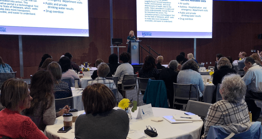 Landgraf noted that a growing movement is tackling these issues in innovative ways by connecting two sectors—community development and health—that have previously worked in relative isolation from each other. The Delaware Center for Health Innovation (DCHI), a non-profit organization of multiple stakeholders, seeks to transform health to achieve better health outcomes and better patient experiences while lowering cost. DCHI’s focus has been on a payment model of care that moves away from episodic care and supports a holistic approach. DCHI also looks to strengthen primary care, advance behavioral health integration, and actively engage patients and consumers in their care . Healthy Communities Delaware (HCD), is an offshoot of DCHI’s Healthy Neighborhoods Committee and is an intentional community model to promote health equity by aligning and investing in communities experiencing health inequities.